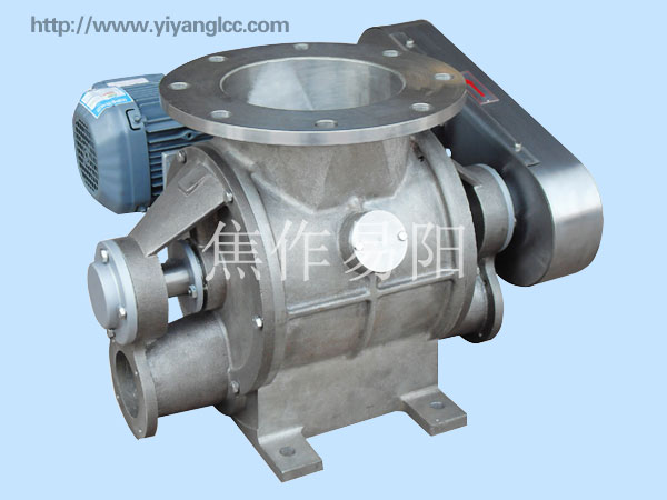 不銹鋼正壓關風器在原有關風器、卸料器、卸灰閥的基礎設施下新型改良新型產品,不銹鋼正壓關風器更新了所有材質包括關風器、與關風器相連的關風器電機,關風器設置在料倉的下料口,關風器與送風管道連通,送風管道一端設有羅茨風機,其特征在于:在關風器兩端傳動部位設有出風室,在風室上部開出進氣口,在所述送風管道的靠近羅茨風機一端的殼體上開有出氣口,出氣口通過一個分叉的氣管分別接入關風器兩端傳動軸部位的進氣口,利用送風管道中的風力向下阻止關風器向上的反吹的風,形成風阻密封住關風器。本實用新型與現有技術相比具有顯著的優點和有益效果:耐正壓關風器安裝在下料灰倉的下料口,可以使在物料輸送中避免送風反向進入下料口而進入下料灰倉,影響下料速度和下料量。